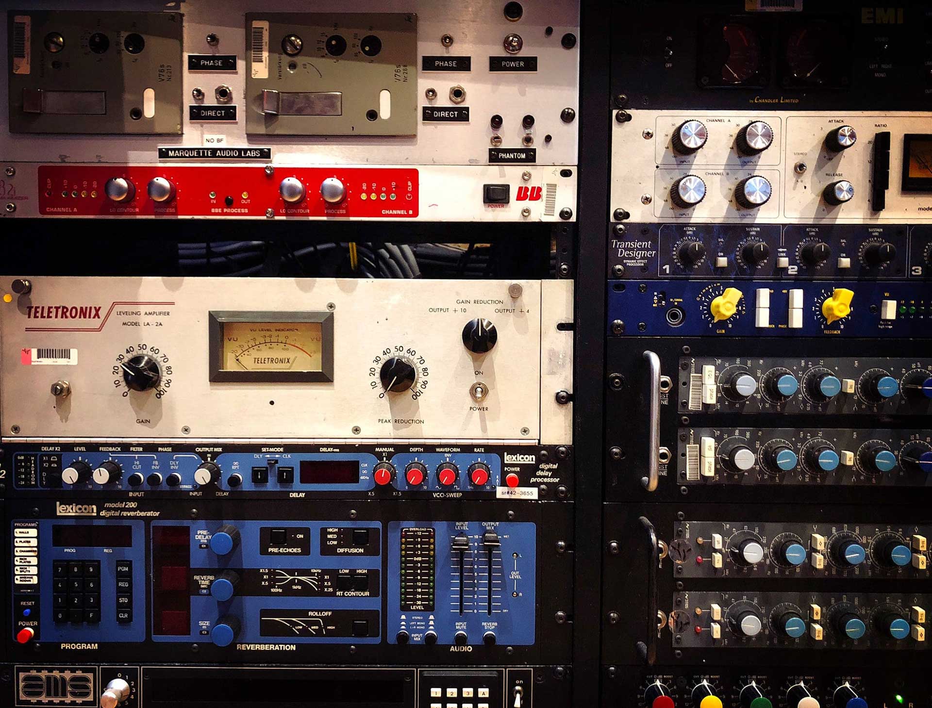 With its lush red fabric walls and cherry wood floors, Studio B has that same Beatles vibe as Studio A and offers a comfortable, relaxing place for light tracking, overdubs, mixing, and editing. The space has a 48-channel API Legacy console, a live room, and a small but very adjustable live chamber. There’s a great lineup of outboard gear and, of course, access to the renowned microphone collection.